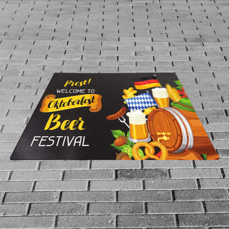 Spotlight a new product or promotion with vibrant Floor graphics. Use floor graphics to direct customers around your store and put your floors to work. After all, floor graphics are hard to miss. Made from durable Floor Vinyl, our floor vinyl graphics have a protective, textured laminate to protect your design from wear and tear up to one year on hard floor surfaces. Our floor graphics work well on any level surface, including tile, hardwood, and carpet. Add a shape to your floor graphics with our Die-Cut capabilities.
