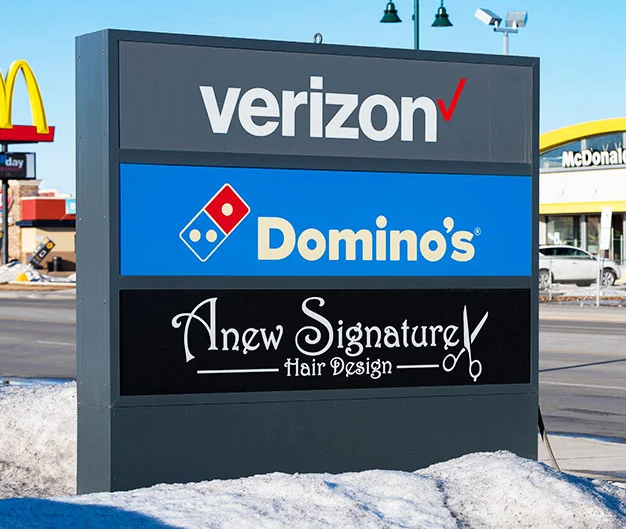Illuminated monument signs are durable, ground-level structures, built with materials like brick, stone, or metal, that uses internal (like LEDs or neon) or external lighting to make text and logos visible 24/7, ensuring strong branding and directional guidance for businesses, often featuring customizable faces for static messages or dynamic digital displays.
